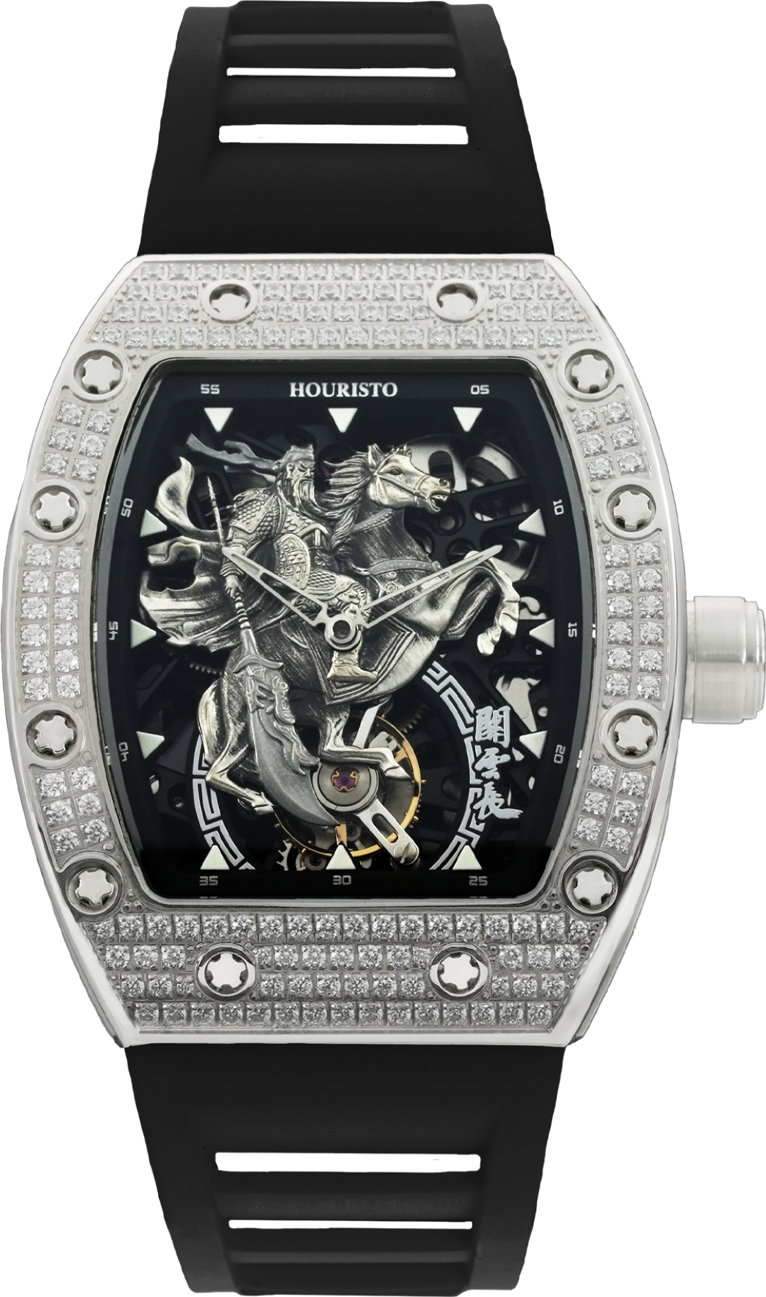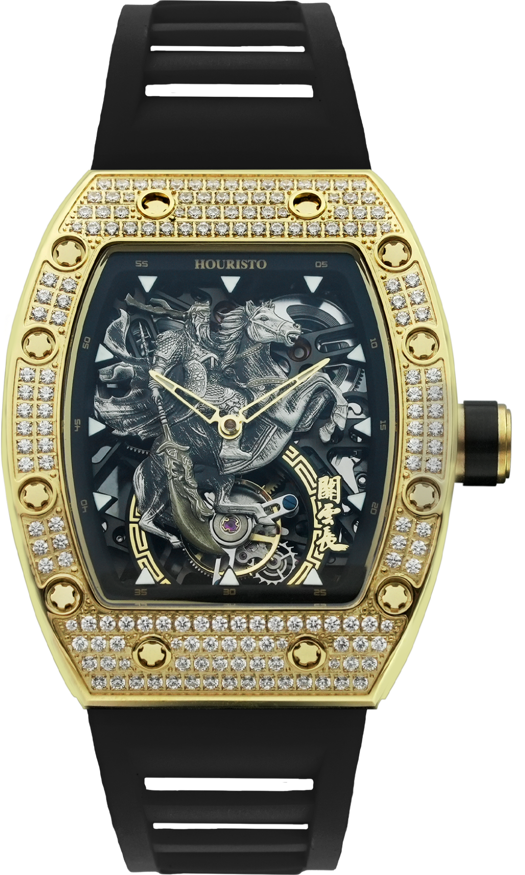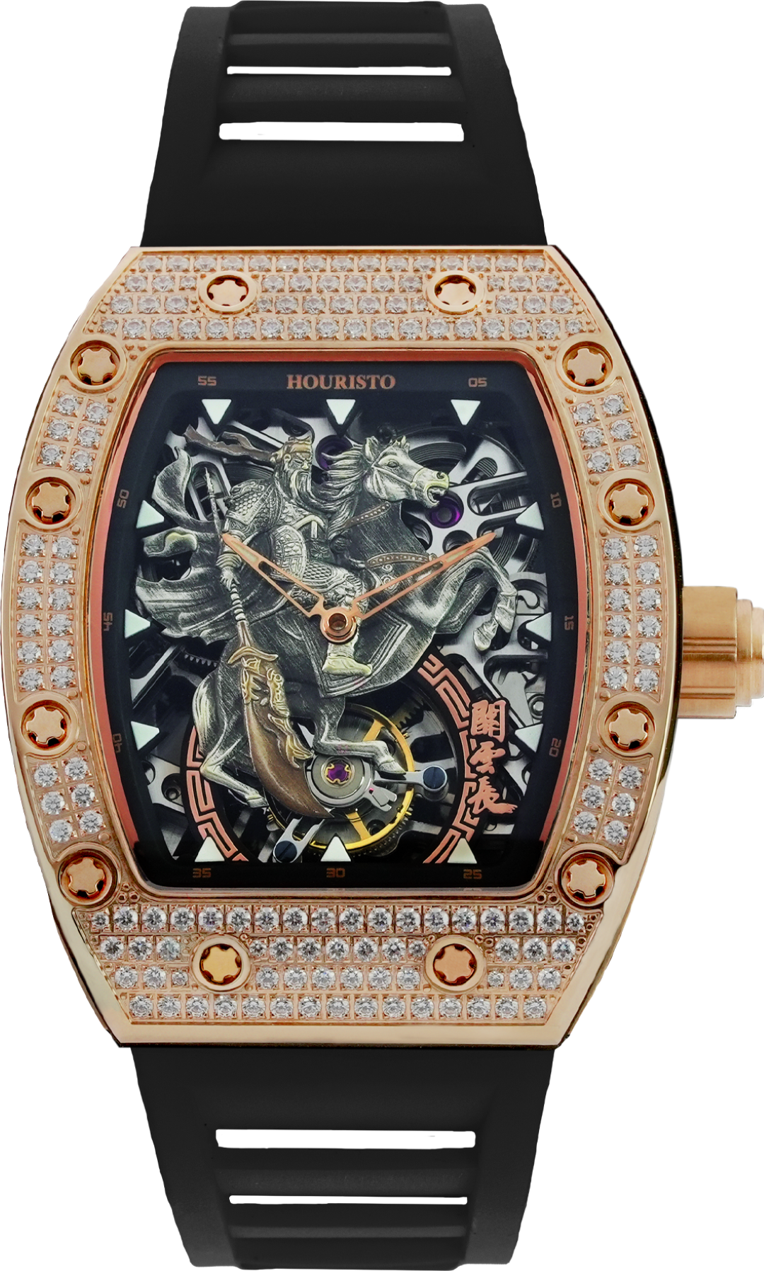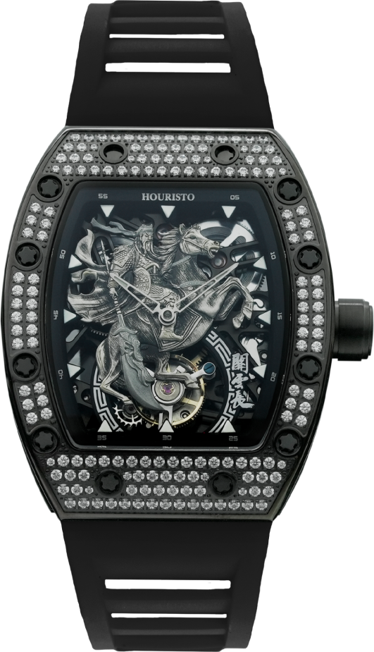 HT-Lord GuanYu Limited Edition The HT-Lord GuanYu Tourbillion Limited Edition is an exceptional timepiece crafted by Houristo, skillfully combining exquisite craftsmanship with the heroic spirit of Guan Yu from ancient Chinese history. Paying homage to this valiant general, this limited edition watch draws inspiration from his martial legacy, creating a unique and symbolic connection between the wearer and the spirit of a historical hero. At the core of this outstanding timepiece lies a precision tourbillon, symbolizing advanced engineering and adding a touch of mechanical expertise to the watch.